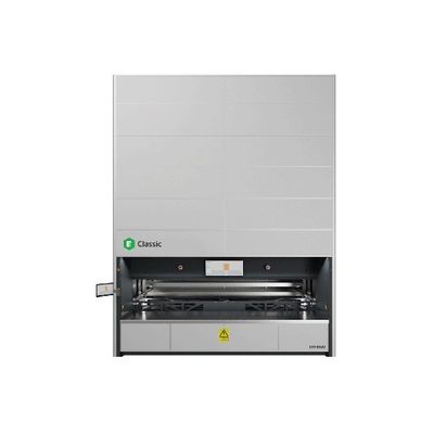 The E/Classic is designed to maximise storage efficiency, and handles larger items. It can reduce space requirements by up to 85%, making it an ideal compact storage solution for heavy and long items. This vertical lift module is a space-saving solution that delivers remarkably fast picking speeds while ensuring ergonomic working conditions for your employees, with an optimal picking height. The straightforward system setup eliminates the need for pre-planning storage locations for items, making it flexible and easy to use.
