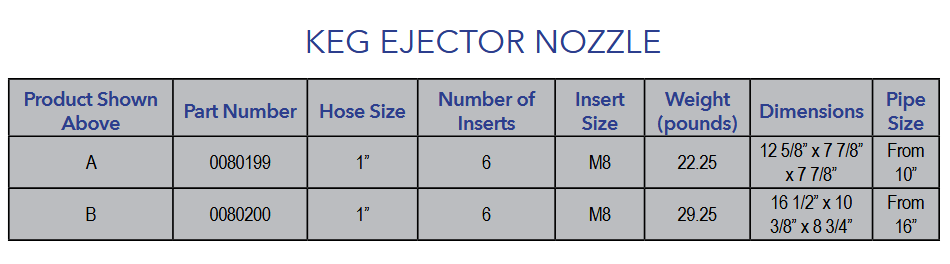 Ejector Nozzles are suitable for cleaning water-bearing pipes only. The unique arrangement of the nozzle inserts results in the “soft“ cleaning effect, which makes the Ejector Nozzles suitable for cleaning older sewer networks. This nozzle uses the water flowing within the sewer to aid the water coming from the pressurized hose, thus utilizing the advantages of both cleaning methods.