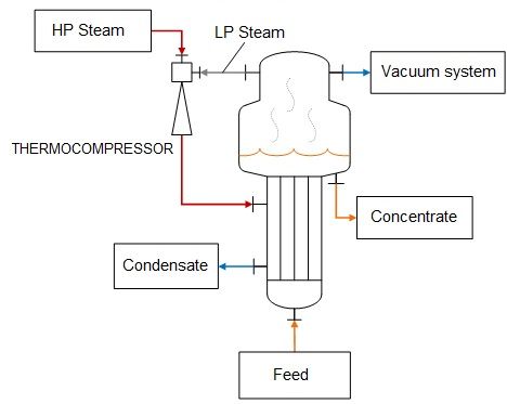 - Steam re-compression and gas extraction.