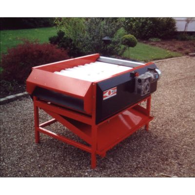 Air drying for potatoes.?The potatoes are moved forward at 50. Vulcanized rubber rollers that run over an enclosed air box, with hose connection for hot or cold air. Along the one side there is a door for cleaning.