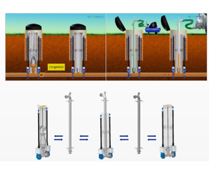 The assembly is performed on the horizontal section of the pipeline in a vertical position with a maximum deviation of +/- 2°. An important advantage of EKON, EKOS columns is the ability to precisely locate the congestion, that has formed in the discharge line. It is possible thanks to the mounted vacuum manometer on the standpipe unit. By analyzing the pressure drop, the section which is not drained can be accurately determined. By using the gate valves on both sides of the columns and the innovative quick coupling, which should be plugged into the standpipe, it is possible to make the column retooling. The selected section must be flushed of the congestion and then restored to its original condition. The whole operation should take less than 15 minutes.
