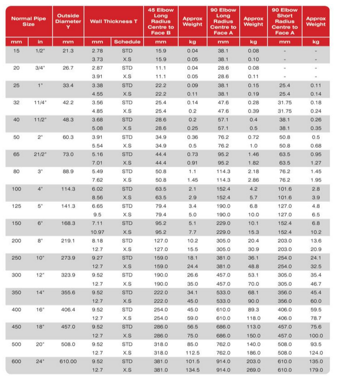 Thickness: Schedule 5S, 10S, 20S, S10, S20, S30, STD, 40S, S40, S60, XS, 80S, S80, S100, S120, S140, S160, XXS and etc.