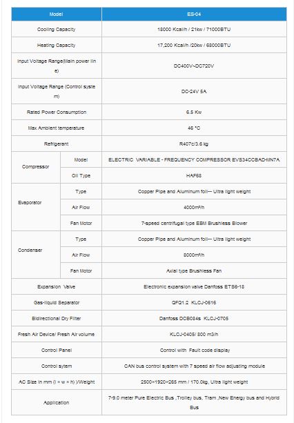 With the development of economy and the enhancement of people’s educational level, the public and government pay more attention to environmental protection. And they are seeking for cleaner energy to replace fuel. So under this condition, all-electric buses emerge in the markets. And ac unit for full electric bus are appeared accordingly. Guchen ES-04 ac unit for electric bus is suitable for 7-8.5m buses, which its cooling capacity can reach to 21KW. Also customers can use DC450-700V voltage for this ac unit for trolley bus. And ES-04 ac unit for electric bus can be equipped with 20KW heating capacity to meet the demands in winter.