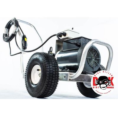 Dirt Killer Dirt Monkee pressure washer. Climb higher, clean more! Electric cold water. 110 Volt, 20 Amp. General pump. 3.5 GPM 1500 PSI. Total Stop. Metal frame.