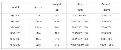 Raw materials enter into crushing chamber through feeding hopper and then be crushed by high speed rotating hammer blades. Raw materials quickly be crushed into small pieces under continuous strike, collide and smash with hammer blades, toothed plate and screen pieces. Then crushed materials would be sent to pass through screen holes. Large particles that can not pass through screen holes need to be re-crushed.