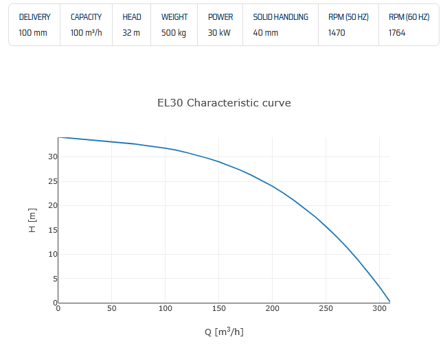 Robust Construction:Built with heavy-duty components, the EL30 is engineered to last over time, even in the most demanding applications. Increased thickness of components, an impeller with a closed geometry, and the possibility of greasing lower bearings and lower lip seals to increase their lifespan.