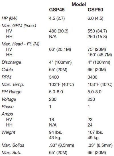 Sub-Prime - Model GSP45/GSP60 -Electric Submersible Dewatering Pumps
