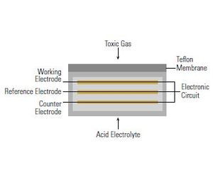 Electrochemical sensors are widely used in the gas detector industry. Learn to understand the technology. The basic components of an electrochemical sensor are a working (or sensing) electrode, a counter electrode, and usually a reference electrode. These electrodes are enclosed in the sensor housing in contact with a liquid electrolyte. The working electrode is on the inner face of a Teflon membrane that is porous to gas, but impermeable to the electrolyte.