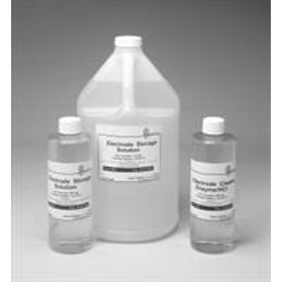 A pH 4.00 buffer with sufficient potassium chloride to make it 3 molar in potassium chloride. This prevents filling solution ions from diffusing out of the electrode. The result of this storage mode is longer electrode life and more rapid response, preventing sluggish electrodes. Separate silver/silver chloride reference electrodes are also safeguarded with this solution.