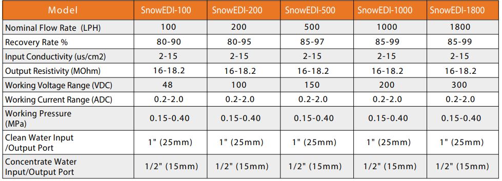 Introducing the ROTEK SnowEDI / REDI / GEDI Series Electrodeionization Systems, a breakthrough in chemical-free deionization technology. These systems provide a cost-eective solution for achieving high-purity water across all -ow rates. With resistivity up to 18.2 MΩ·cm, our EDI systems are reliable, ecient, and environmentally friendly, eliminating the need for chemicals and hazardous waste. As a replacement for conventional mixed-bed ion exchange, ROTEK`s EDI technology ensures seamless operation without the hassle of chemical regeneration, making it the ideal choice for modern high-purity water applications.