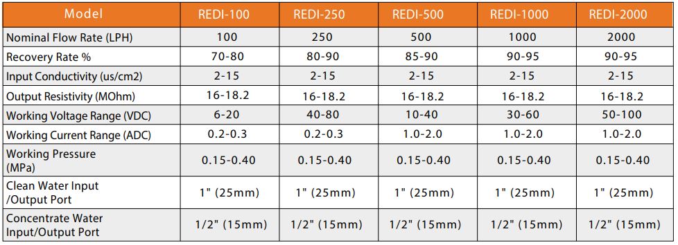 EDI system is superior to a conventional mixed-bed deionization system both in ease of operation and maintenance. In addition, no chemicals are used for regeneration during the purification process.