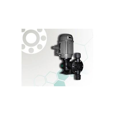 These pumps are plunger piston metering pumps featuring a spring return stroke in an alluminium housing with oil bath. Each pumpis equipped with manual flow adjustment and can be equipped with an electric actuator which accepts A 4÷20 mA OR inverter. SS316, PP, PVDF or PVC pump head. PTFE DIAPHRAGM. Spring return mechanism in a PP housing. 17÷60 lt/h max flow rate. 5 bar max pressure. 41-58-82-116-160 fixed frequency. 50 piston diameter. 0,9 kW standard IP55 motor.