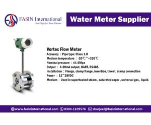 Electromagnetic flow meter is a kind of high precision and high reliability flow meter. It is Used to measure the volume flow of conductive liquid and slurry in a closed pipe. Nominal Diameter : DN10~DN3000mm Medium: Sewage water/ Water/ Milk/Juice/ Other conductive Liquid Unit : Liter / m³ / Gallon (Optional)Contact us for any requirement of water meter: Mobile: +92 304 1109576, E-mail: sharjeel@fasininternational.com