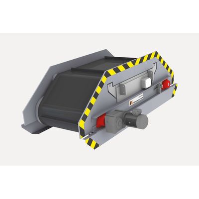 IFE electromagnetic overband separators are used to separate ferrous impurities from any kind of bulk material. They are used to recover magnetic particles from slag, household or industrial waste, foundry sand etc. and are utilized to protect crushers, belt conveyors, screens or grinders from metallic tramp particles. When a large volume of tramp iron is expected, a self-cleaning type separator will be more economical than a simple suspended magnet which is sufficient for small quantities. Most beneficial are electromagnetic overband separators, when strong magnetic fields are needed or arrangement of equipment only allows for high clearence distances.