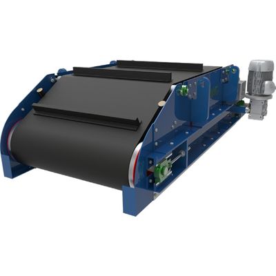 The overbands separators with electromagnetic coil are especially suitable for continuous work that requires extra magnetic power. The electromagnetic field is higher to permanent magnets, which allows installing it at a greater distance from the material to be filtered. The situation on the conveyor belt is exactly the same as the system with permanent magnets. They are especially effective in many industries (recycling, mining, cement, plastics, aggregates, etc.). Our compact design is highly efficient in terms of coil cooling, avoiding any magnetic power loss due to heat. Each unit is designed according to each installation requirements. The magnetic system has a multitude of customized elements: electromagnetic coil power, physical measurements, conveyor belt type and type of drive fins, power and type of motor for traction, paint finishing, etc.