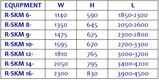 The Electromagnetic Overbelt (R-SKM) is organized by families, according to measurements and magnetic magnitudes. The basic measurements of each family are shown in the following table: