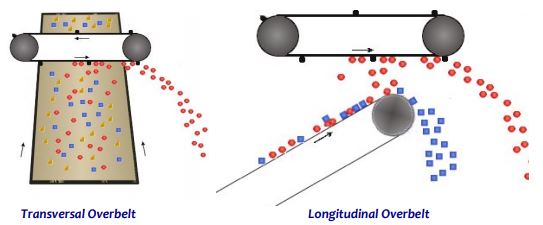 When the location is longitudinal, the installation should be done on the head roller of the conveyor to take advantage of the material’s parabolic path.