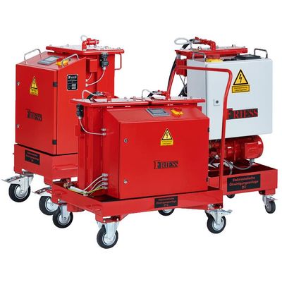 However, water in the oil counteracts this. For this reason, in an Electrostatic Oil Cleaning System such as the FRIESS Model D, the oil must be suitable for the process right from the start. Among other things, this means that it must contain less than 500 ppm water. This is the only way in which the electrical resistance can be kept as high as possible.