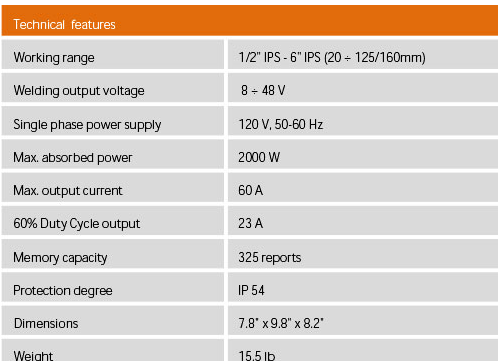 The Elektra Light machine is made in compliance with international standards. This is welding machine’s structure is light weight, so it is extremely easy to carry around. It is available in two version: with or without optical scanner. Composed of: machine body, an in built memory with 325 welding cycles, featuring the possibility of transfering data to a Pc/Laptop.