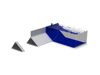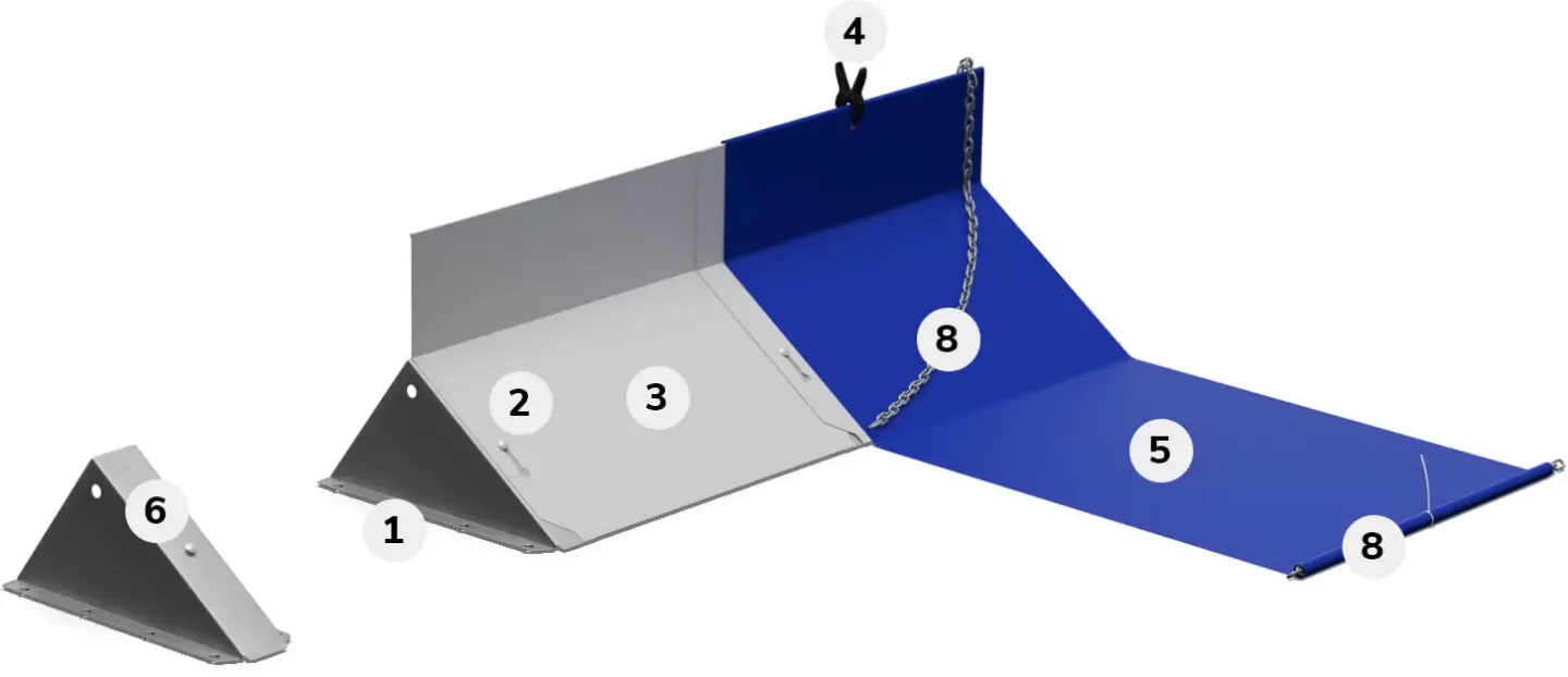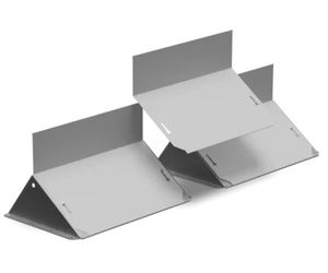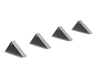 Triangular barrier supports are designed for stacking, drastically reducing storage space. Their reclined front incorporates a mount knob for rapid assembly, while the bottom anchor wings feature sharp collars to provide maximum ground friction.