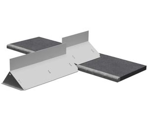 These flood barriers consist of rigid self-supporting elements that are connected to form a continuous flood barrier wall, similar to anchored vertical walls. The L-shaped structure uses the weight of floodwater over the front edge of the system to provide stability and create a seal towards the ground.