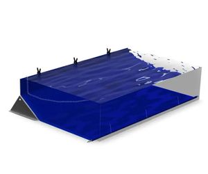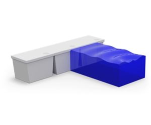 These flood barriers consist of water-filled containers that are cellular in structure and can be linked together to form a line of defense against floodwater. They are often made of impermeable materials such as polyester, polyethylene, and plastic, and achieve stability through their shape and weight of the filling material. However, they are prone to sliding when overtopped. These gravity dams require machinery such as trucks and water pumps for installation, and the mobilization and deployment process is affected accordingly. Minor leaks can usually be repaired in service. The system has a rigid bottom and is not suitable for uneven terrains.