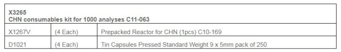 Model C11-063 - CHN Consumables Kit for 1000 Analyses.