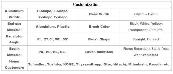 AOQUN Elevator Door Seals are designed to comply with European EN115 and American AV7 codes and suit all types of elevator doors. A range of quality aluminum profiles is available, such as H-shape, F-shape, T-shape. Y-shape and irregular shape. It can provide an effective and aesthetic solution to avoid the incidents of entrapment in sliding elevator doors, it can provide best sealing effect, reducing 98.5% air leakage, which is also an effective cold smoke seal and wind noise reduction and energy saving. Common use for residential or commercial escalator/elevator, anywhere extra seal brush strip is needed.