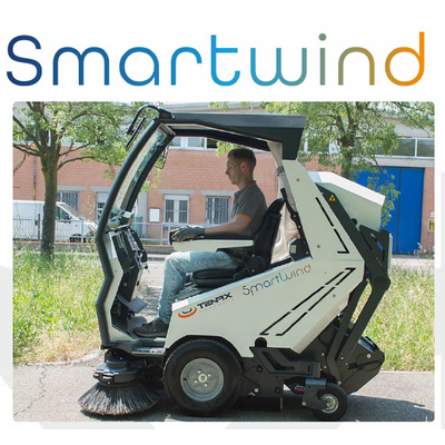 Smart wind is the 100% electric road sweeper which is completely unique, as it is the most compact ride-on road sweeper with raised offloading. Featuring an innovative “steer-by-wire” system controlled by a control stick which makes it safe and manageable, it is the ideal solution for cleaning both indoor and outdoor areas of small-medium size. Ecological and versatile, this ride-on road sweeper improves the quality of life both of its operator and residents by completely eliminating CO2 emissions and providing a 40% reduction in noise levels.
