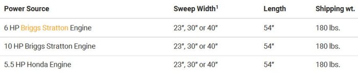 - Available in Three Sweep Widths: 23″, 30″ or 40″