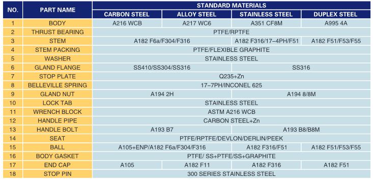 The material is according lo ASTM Standard. Model Denote:EFC=Elite Flow Control I 1/2=Sizein inch I BV=BallValve I 1 = 150Lb I R=RF End I 1=Floating, Split Body.
