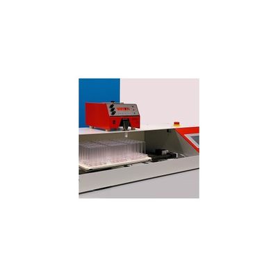 Automatic filling machine for Microtiter plates (MIP), arrays of vials, tubes or containers with the elmor counting machines. The elmor 900 filling machine is a biaxially positioning device which can be used with the elmor C1 or elmor C3 counting machines. It may be configured individually for different types of containers in any one- or two dimensional arrangement. It is used mostly for Microtiter plates with different plate shapes, e.g. for MIP’s with 6, 12, 24, 48 or 96 wells. The machine may be modified individually to cater for a wide variety of applications and customer requirements. The picture shows an example of a XY-filler for 9 Microtiter plates with extended hight in a 3 x 3 array.