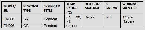 Sprinkler or sprinkler head discharges water automatically after detecting fire when the default predetermined temperature exceeded. Automatic Sprinkler system extinguishes fires at a very early stage before they grow and spread throughout your whole space. EMACO sprinklers are used in automatic sprinkler system and designed per the installation standard (NFPA13). EMACO sprinklers feature a compact design, different finishes, and temperature ratings. Pendent sprinklers are installed with adjustable or non-adjustable escutcheon plates. These are intended to be installed below finished ceilings. Application: Used in factories, Warehouses, museums, schools, libraries, server rooms, high-rise commercial (large and small) buildings, data farms and so on.