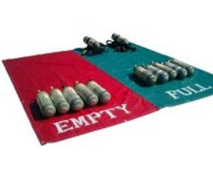 Husky also manufacturers SCBA “Full/Empty” Staging Mats with or without ribbing. The ribbing when specified comes on the tarp approximately 8-9" apart and prevents your airpacks from rolling off the mat. One side is green and stenciled “FULL” the other side is red and is stenciled “EMPTY.”