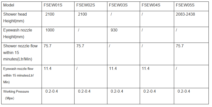 - It can be used for flushing of the body, eyes and face at the same time. It can protect the personnel safety of the whole area. Install the floor draining facilities in the site to drain the flushing water promptly.