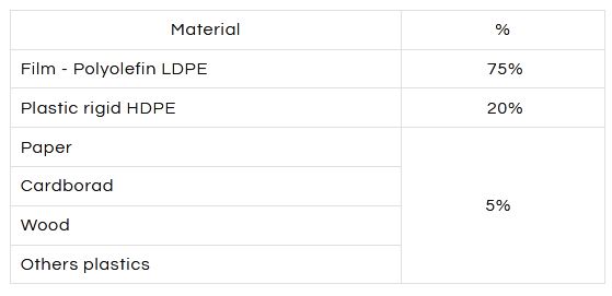 Input waste: Mixed plastic (min. 75%) and others contaminants.