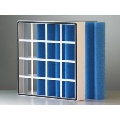 EMW reusable frames provide an innovative alternative to one-way filter cells. The specially designed frame and housing made of recycled polystyrene can be used again and again, substantially reducing disposal costs as compared to conventional filter cells.