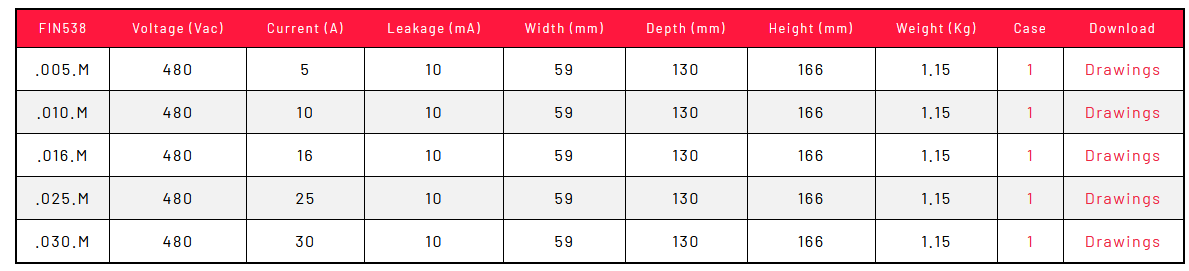 Features: Rated current from 5 to 30A. Nominal voltage 480 Vac. High differential and common mode attenuation. Low leakage current. DIN rail and panel mounting.