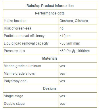 The performance of RainSep is accomplished using vertical profiles with specially engineered surface features that effectively collect, shelter and drain the entrained water droplets from the air stream.