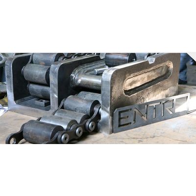 Entro`s Roller Chain Load Skates are available in many shapes and sizes. The load skates are available with different sizes of rollers, different numbers of rollers, different numbers of chains, and different mounting options, all standard. Optional end plates allow additional mounting options, or guide accessories to be added to the load skate.