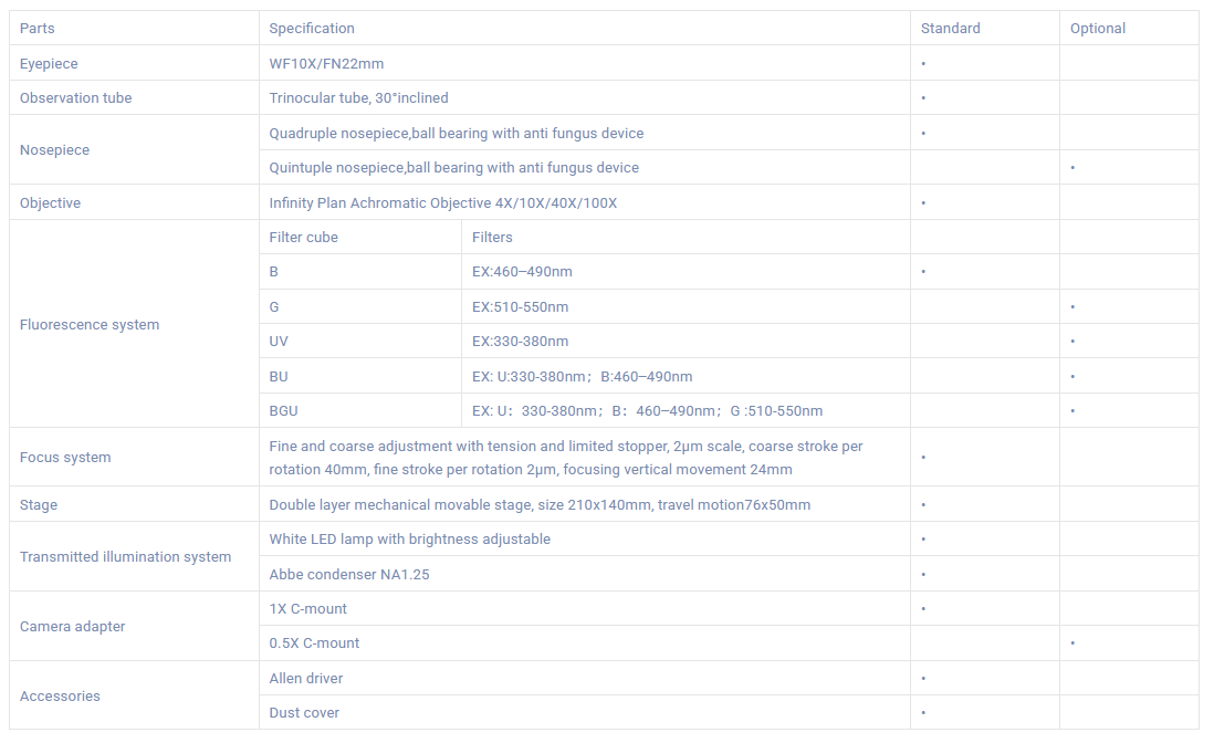 - Meet the needs of cell slide observation, respiratory virus detection, tuberculosis Detection, dermatophyte detection and other common fluoroscopy needs.