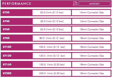 The ET series range of air pumps ensures that there is plenty of water movement in wastewater applications; this boosts oxygen levels in the water, allowing aerobic bacteria to decompose. When used in medical applications, the ET series provides a high flow at low pressure.