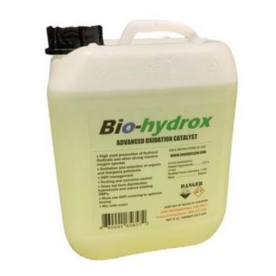 Bio-hydrox Oxidation Catalyst is a highly concentrated advanced oxidation liquid chemical for the generation of hydroxyl radicals and other reactive oxygen species, ROS. This product is 100% soluble in water and has a shelf life of 6 months.