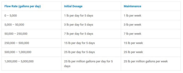 *The nominal dosage for optimum nitrification are typically one pound of product for every 12 – 15 pounds of ammonia require to be removed
