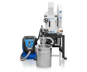 The large volume receptacle accepts up to 26 liter of sample and comes with a flexible connection flange and a carrier on wheels. This version is the best choice for dust-free operation.