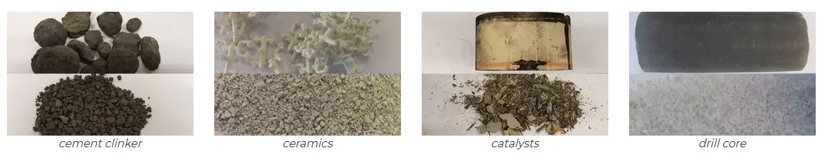 • Feed material: medium-hard, hard, brittle, tough