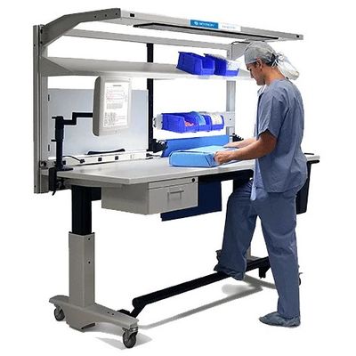 Height Adjustable and Ergonomically Designed. ErgoStat Prep & Pack tables are designed to alleviate the physical stress placed on technicians performing the inspection, assembly and packaging in your Central Sterile Supply Department. Available with either powered or manual height adjustment capability, the ErgoStat® features a solid surface work station that adjusts from 26 ½” to 41 ½” – easily accommodating technicians of all heights in both standing and sitting positions.