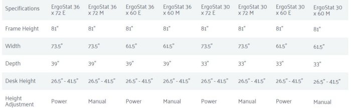 ErgoStat has a non-porous solid work surface and heavy-duty inner/outer leg extrusions for increased stability.