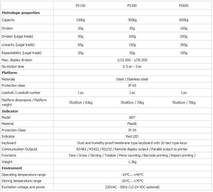 Fully-automatic, single-load cell Esit PS scales are robust and reliable devices designed to withstand heavy industrial conditions. Standardly bundled with multi-functional electronic indicator ART, and produced in various capacities (150 kg, 300 kg and 500 kg) and single size (70x80 cm) with steel and stainless steel options. Esit PS scales aim to meet all types of user requirements. PS scales may be integrated with other Esit indicators to be used in various other applications and under many different conditions. There are stainless steel and Ex-proof types for use in case of humidity and in the presence of flammable materials. They optionally feature filling control and industrial control outputs.
