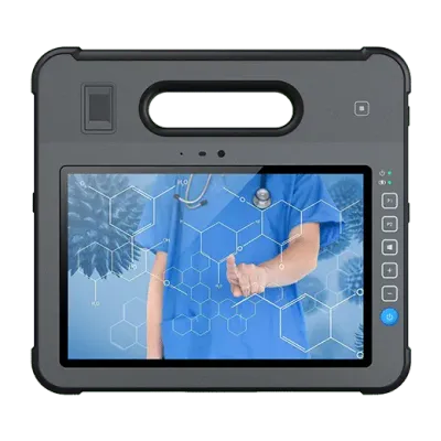 The tablet features a bright, high definition LCD – perfect for a medical imaging display. 7H+ chemically hardened glass resists scratches from any debris. The tablet also offers optional sunlight readable LCD (800NIT) for outdoor/full sunlight usage. The multi-touch screen supports up to 10 contact points or an included digitizer pen for accurate note-taking and markup.